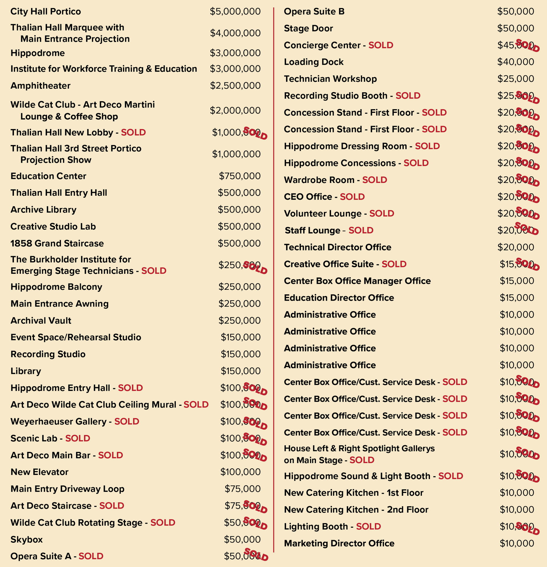 Thalian Hall is pleased to offer many naming opportunities to those interested in pledging their support to this campaign! With a wide range of financial pledges available, these naming opportunities provide you the chance to create a lasting legacy with your generous support.