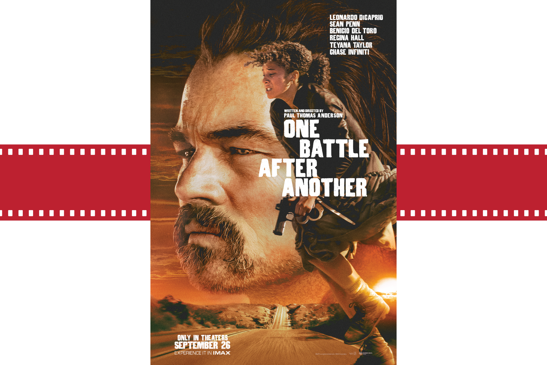 One Battle After Another is written, directed and produced by Paul Thomas Anderson and starring Academy Award and BAFTA winners Leonardo DiCaprio, Sean Penn and Benicio Del Toro, along with Regina Hall, Teyana Taylor and Chase Infiniti. Washed-up revolutionary Bob (DiCaprio) exists in a state of stoned paranoia, surviving off-grid with his spirited, self-reliant daughter, Willa (Infiniti). When his evil nemesis (Penn) resurfaces after 16 years and she goes missing, the former radical scrambles to find her, father and daughter both battling the consequences of his past.